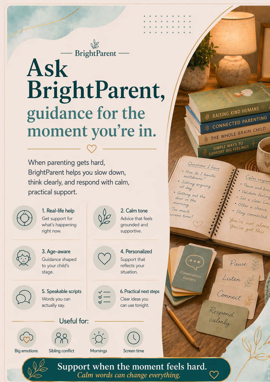 For many parents, the problem is not a lack of advice. It is that much of the advice available can feel too generic, too idealized, or too far removed from how parenting challenges actually unfold at home. When a parent is facing bedtime resistance, homework refusal, emotional outbursts, sibling conflict, or a difficult screen time transition, they usually do not need more theory in the moment. They need calm, specific guidance they can use right away, in language that feels natural with their child.