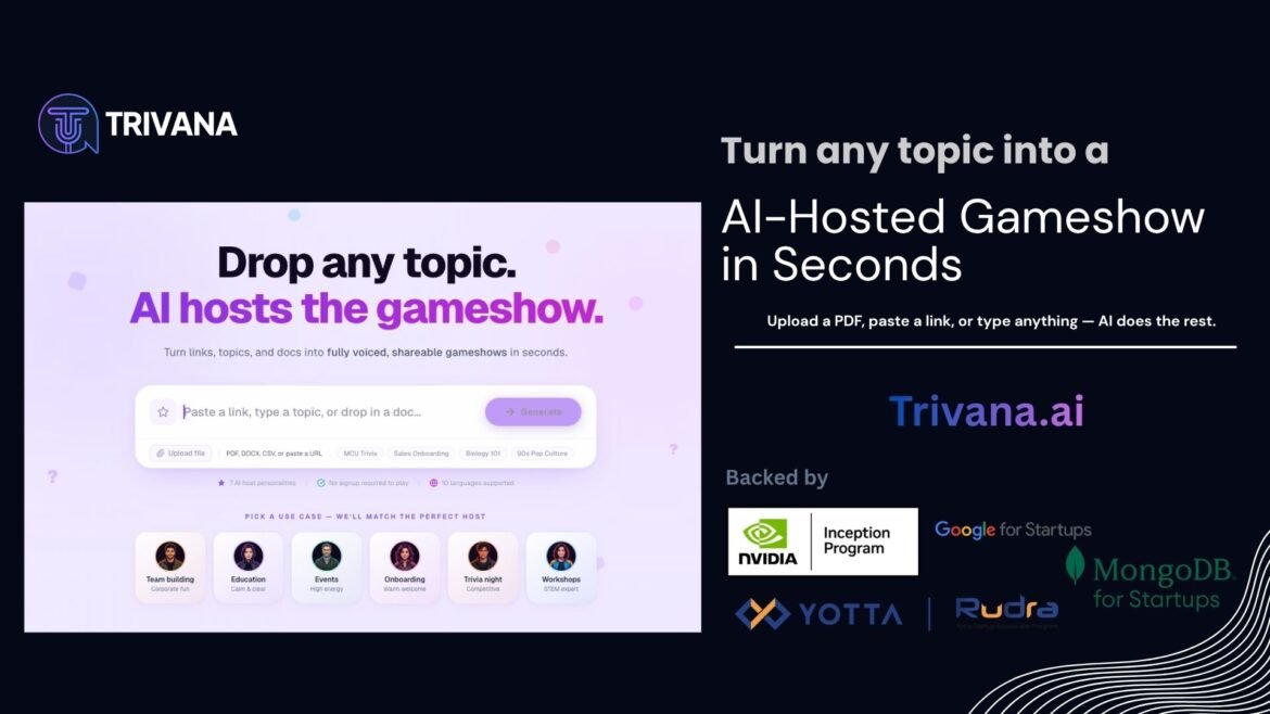 Backed by NVIDIA Inception, Google for Startups, and MongoDB for Startups, Trivana.ai lets anyone transform PDFs, links, or any topic into fully voiced AI gameshows — no coding, no app …