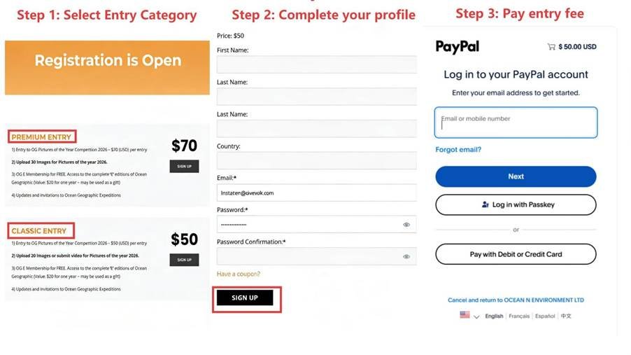- Choose your entry tier. Go to the PICOTY registration page and select either Classic Entry (up to 20 images) or Premium Entry (up to 30 images plus a 30–60 second video). Either tier also allows an additional 15 images in other categories. For the SMP category alone, Classic is sufficient; Premium gives more room if you want to enter multiple categories.