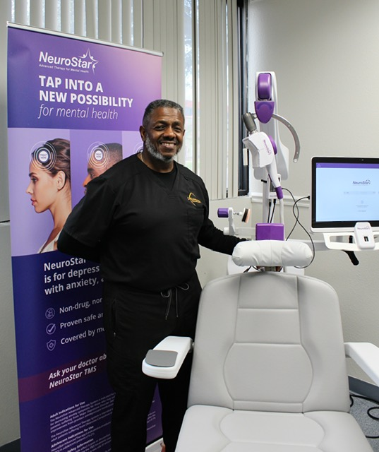During a TMS session, a Magnetic Therapy that wakes up nerve cells that have become quiet due to severe depression. It is a noninvasive procedure that does not require surgery or anesthesia. New patients stay awake during the session and can return to their daily activities immediately after their treatment session.