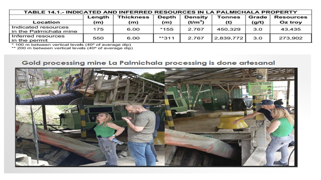 La palmichala wants to build and operate its own processing plant with a capacity of 240 tons per day of ore and process 6,000 tons of ore from la Palmichala and other mines in the area. Remedios has over 150 small mines that need to process the Ore. China wants to buy all the Ore with high concentration of precious metals available now.