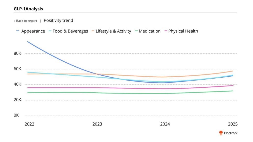 One signal cuts against the positive momentum. Consumers are increasingly anxious about muscle loss during rapid weight reduction. Growth is high. Sentiment is negative. That combination means demand is forming from anxiety, not ambition.
