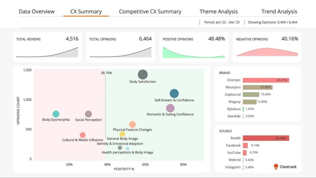 To map how that growth is changing retail behavior, Clootrack analyzed 95,854 GLP-1 consumer conversations collected between January 2022 and December 2025, extracting 340,725 opinions using its Voice of Customer analytics platform.