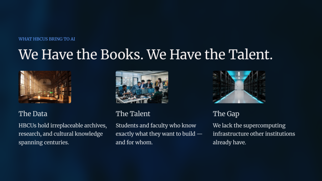 The Imperative for Sovereign Compute: Currently, foundational AI models are trained on data that offers less than 5% coverage of Black culture, leading to dangerous biases in healthcare, finance, and history. The HBCU Supercomputer Initiative aims to bridge this “compute gap,” ensuring the global African diaspora moves from being mere consumers of technology to the sovereign shapers of the intelligence layer.