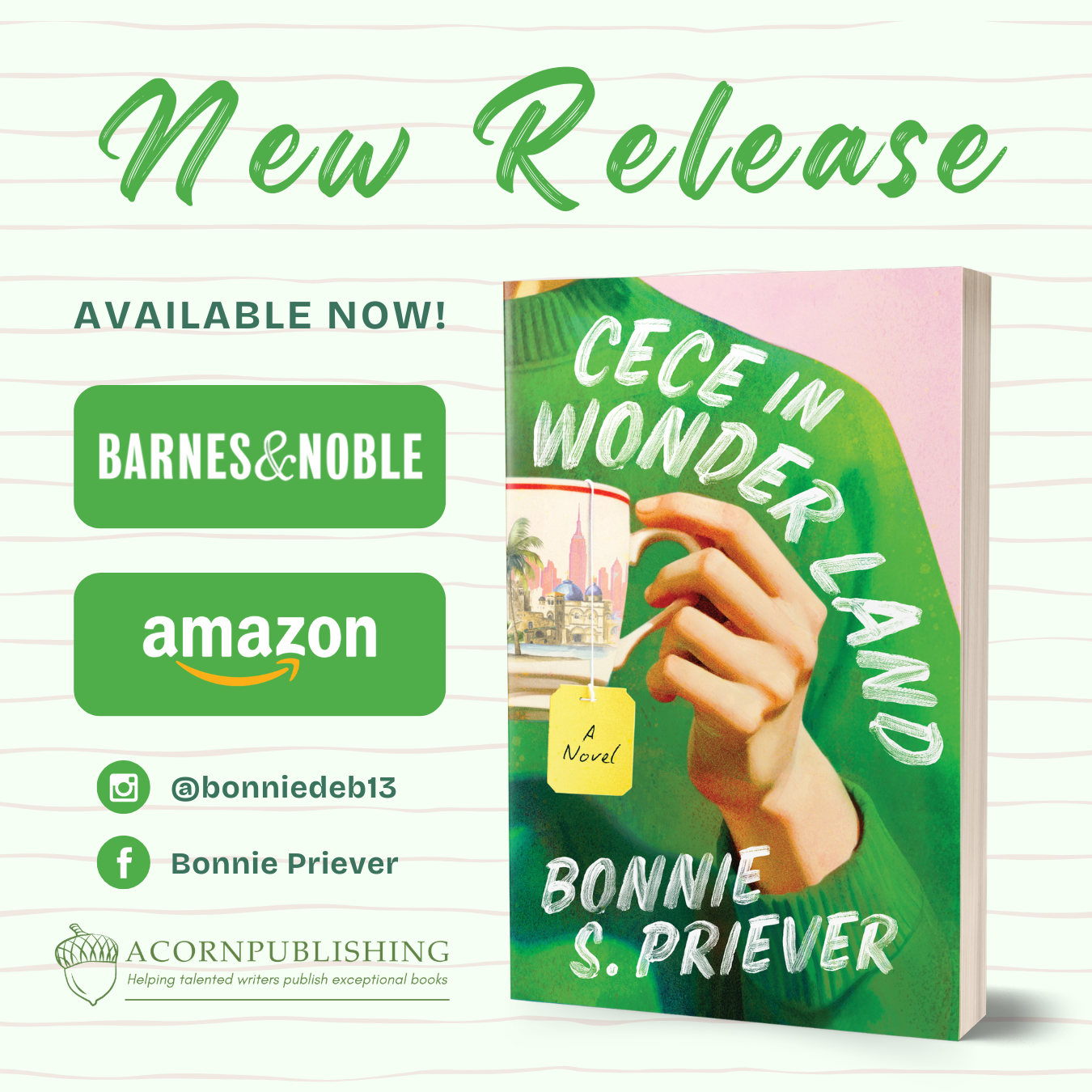 To book an interview with Priever, engage her for a speaking opportunity, or secure an Advanced Reader Copy of Cece in Wonder Land, please contact Paula Lowe, publicist, Paula@Loukmedia.com or by calling 617-765-4012. Follow Bonnie on Facebook  or Instagram.