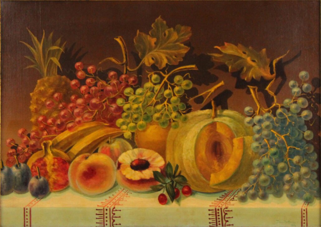 Fruit still life: Oil on canvas still life of fruit painting by Isaac W Nuttman (New Jersey, born 1801). Estimate: $3,000-$5,000