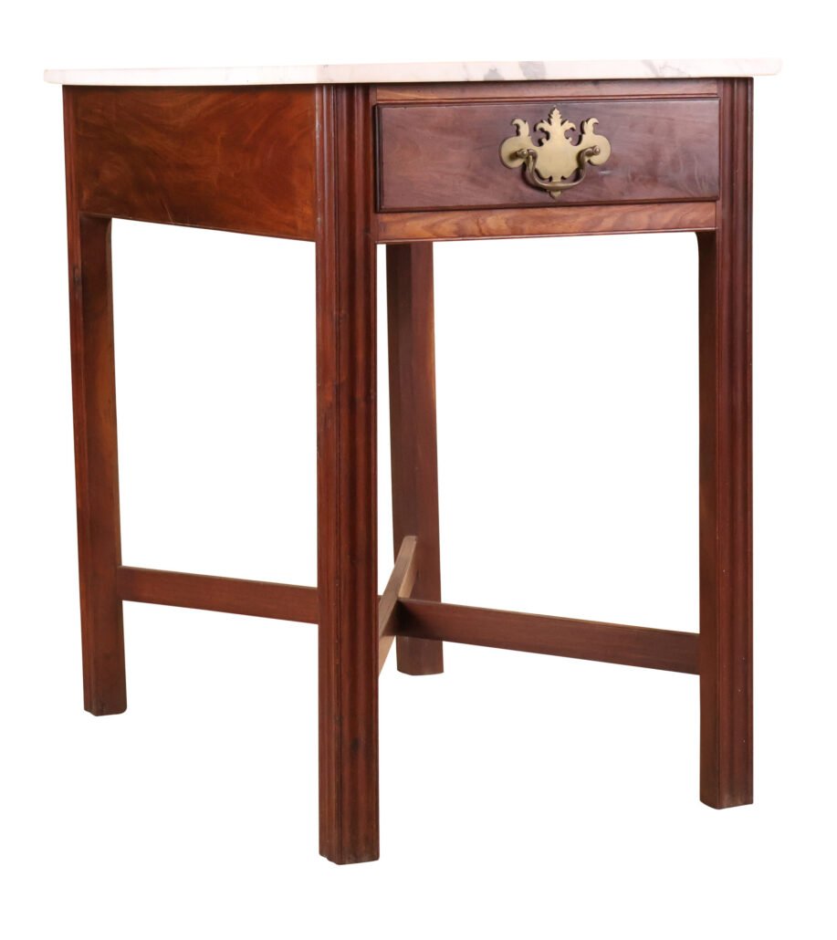 Marble-top slab table: The John Brown Chippendale mahogany and marble cross-stretchered slab table, Providence or Newport, Rhode Island, circa 1770. Estimate: $3,000-$5,000