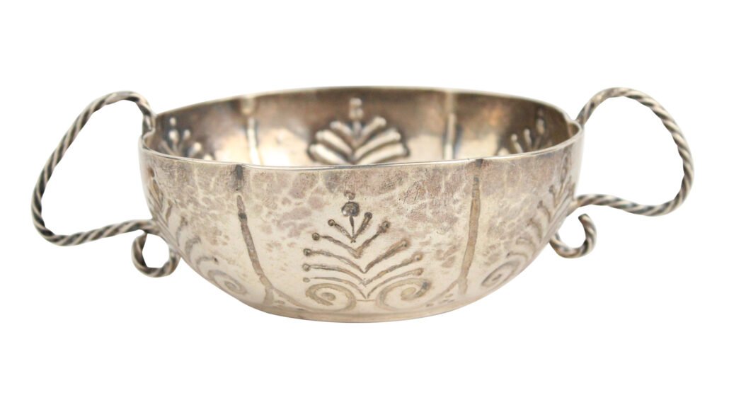 Silver Bowl: American silver small two-handled Brandywine bowl carrying the mark of Henricus Boelen, New York, circa 1720. Estimate: $7,000-$10,000