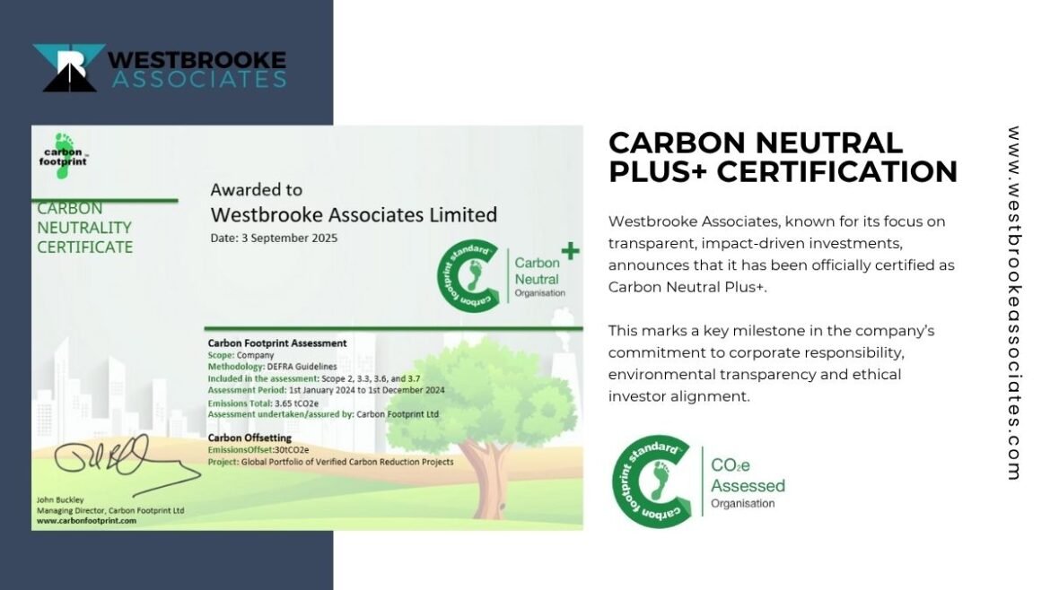 The Carbon Neutral Plus+ certification comes as Westbrooke Associates unveils a broader commitment to transparency, sustainability and client service. This milestone coincides with a wider relaunch of the firm’s investor communications, which is part of an ongoing effort to improve clarity, access and trust for both new and returning clients.